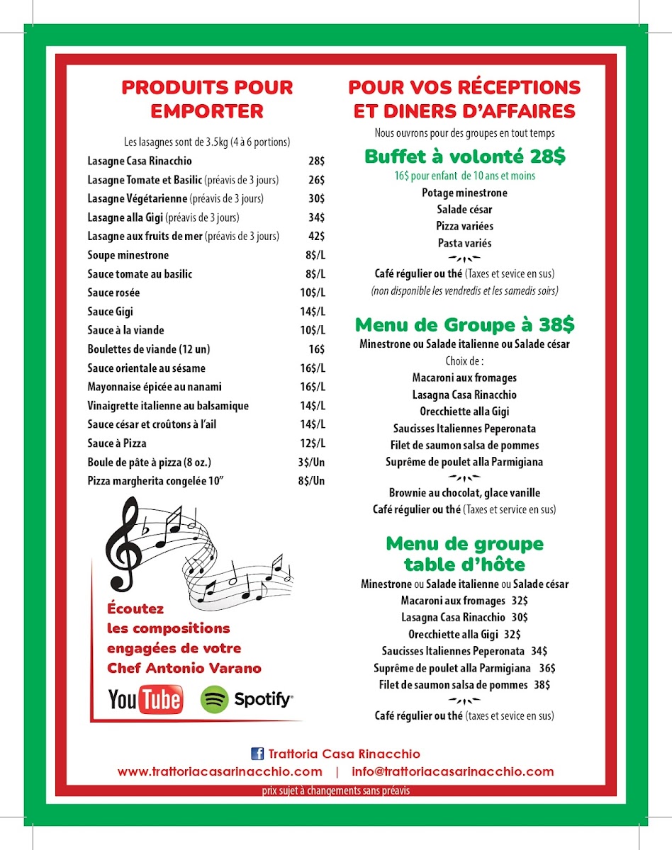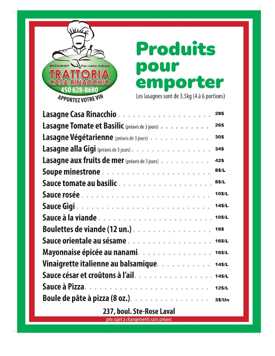 Welcome to Trattoria Casa Rinacchio, a charming eatery located in Laval, Canada. This local gem not only serves a delightful menu but also stands out for its warm, accommodating atmosphere. Guests rave about the homemade soup, rich in flavor and expertly seasoned, making it a must-try for repeat visits. For pasta lovers, the shells with rose sauce and prosciutto promise an unforgettable experience—so delicious that even non-pasta enthusiasts find themselves enamored.